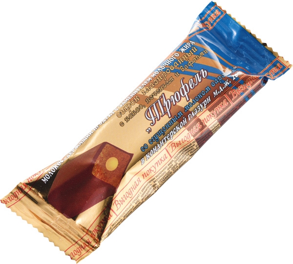 Сырок глазированный с какао, печеньем и вафлями «Трюфель со сгущенным молоком вареным» в кондитерской глазури