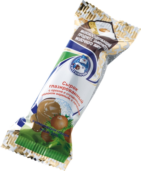 МОЛОКОСОДЕРЖАЩИЕ ПРОДУКТЫ С З.М.Ж. СЫРКИ ГЛАЗИРОВАННЫЕ, ПРОИЗВЕДЕННЫЕ ПО ТЕХНОЛОГИИ СЫРКОВ ТВОРОЖНЫХ ГЛАЗИРОВАННЫХ, М.Д.Ж. 20%, масса нетто 50г и 38г