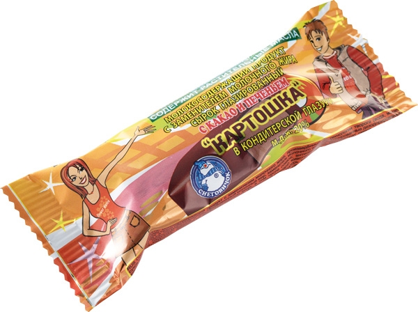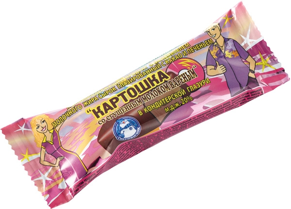 Сырок глазированный с какао и печеньем «Картошка со сгущенным молоком вареным»