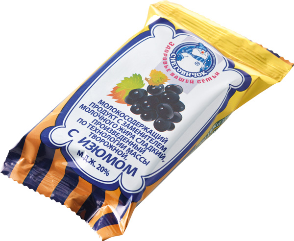 Состав продукта: молкосодержащий продукт с з.м.ж., произведённый по технологии творога, сахар, наполнитель, ароматизор.