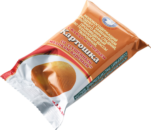 Творожная масса «Картошка», в состав которой входит творог, бисквитное печенье высокого качества и натуральное какао, имеет вкус очень похожий на пирожное «Картошка».