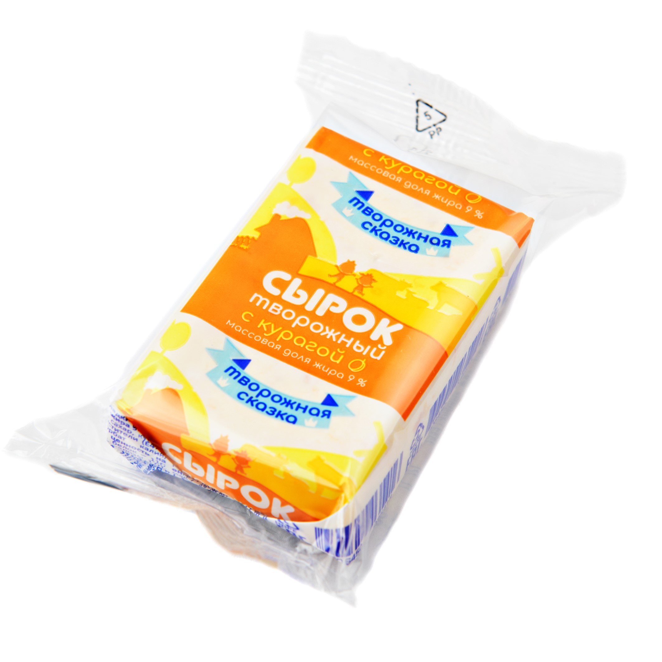 Сырок творожный сладкий с курагой, массовая доля жира 9%, Торговый знак «Творожная сказка»