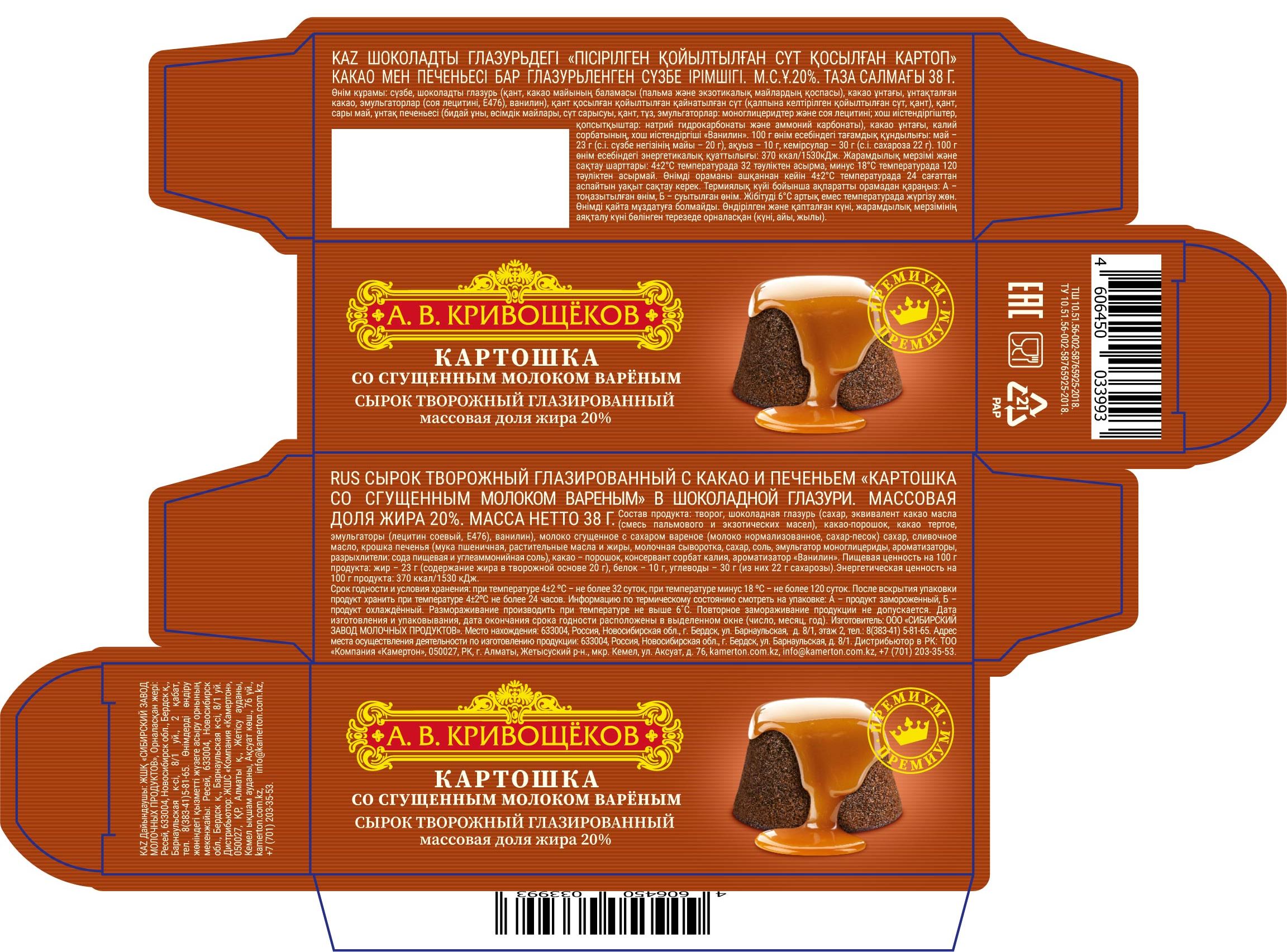 «А.В.Кривощёков» КАРТОШКА СО СГУЩЕННЫМ МОЛОКОМ ВАРЁНЫМ! Сырок творожный глазированный с какао и печеньем «Картошка со сгущенным молоком в