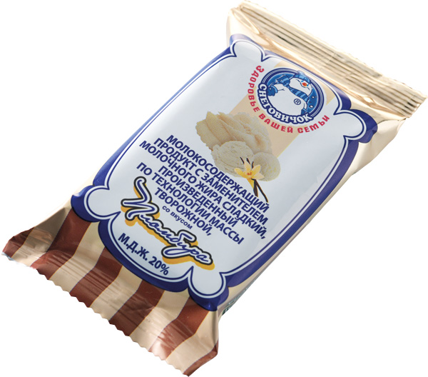 Состав продукта: молкосодержащий продукт с з.м.ж., произведённый по технологии творога, сахар, наполнитель, ароматизор.