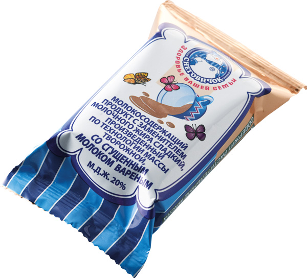 МОЛОКОСОДЕРЖАЩИЙ ПРОДУКТ С З.М.Ж. СЛАДКИЙ, ПРОИЗВЕДЁННЫЙ ПО ТЕХНОЛОГИИ МАССЫ ТВОРОЖНОЙ М.Д.Ж. 20%, масса нетто 90г и 180г