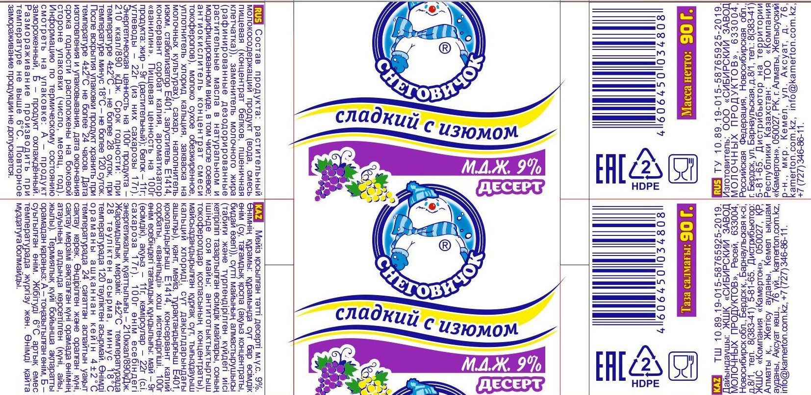 ДЕСЕРТЫ ТЗ СНЕГОВИЧОК, МАССА НЕТТО 90 г