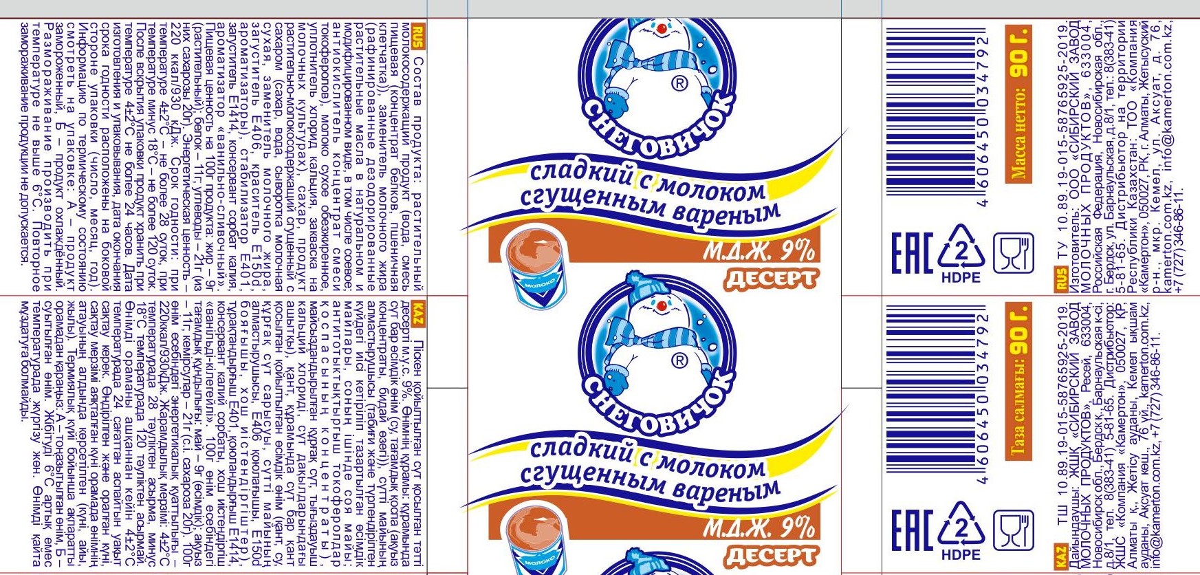 Десерт сладкий с молоком сгущённым варёным,тз Снеговичок