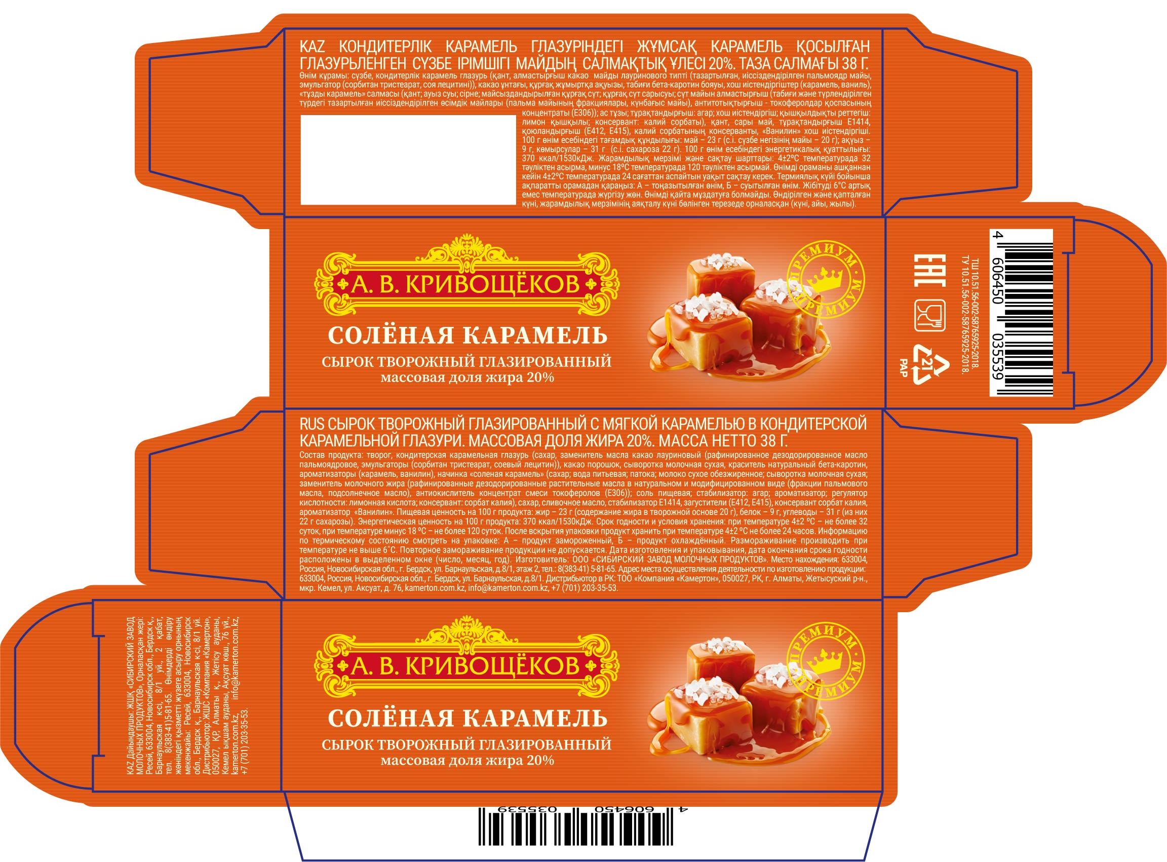 «А.В.Кривощёков» СОЛЁНАЯ КАРАМЕЛЬ! Сырок творожный глазированный с мягкой карамелью в кондитерской карамельной глазури.