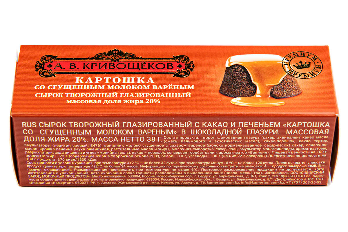 «А.В.Кривощёков» КАРТОШКА СО СГУЩЕННЫМ МОЛОКОМ ВАРЁНЫМ! Сырок творожный глазированный с какао и печеньем «Картошка со сгущенным молоком в