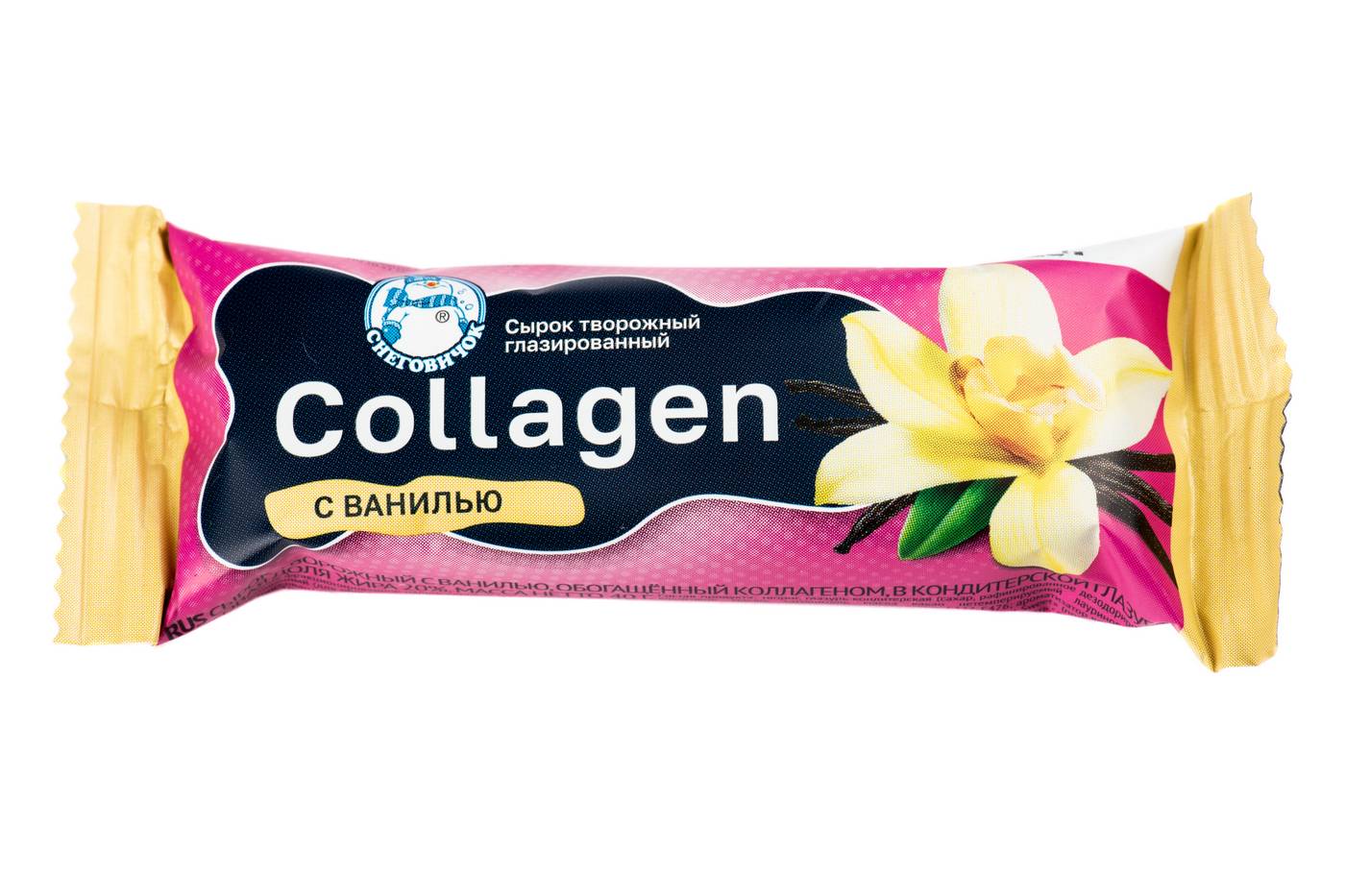 Сырок творожный с ванилью, обогащённый коллагеном, в кондитерской глазури, массовая доля жира 20%. Масса нетто 40 г.